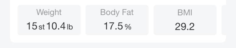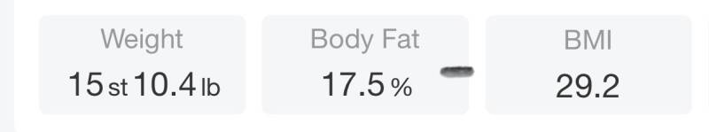 Morning Weigh-In: 15st 10.4lb | 17.5% Body Fat | 29.2 BMI