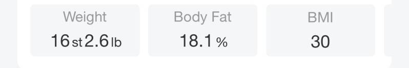 Morning Weigh-In: 16st 2.6lb | 18.1% Body Fat | 30.0 BMI
