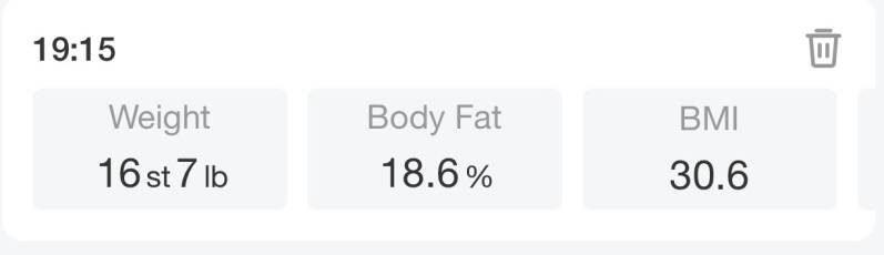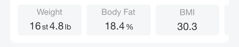Morning Weigh-In: 16st 4.8lb | 18.4% Body Fat | 30.3 BMI