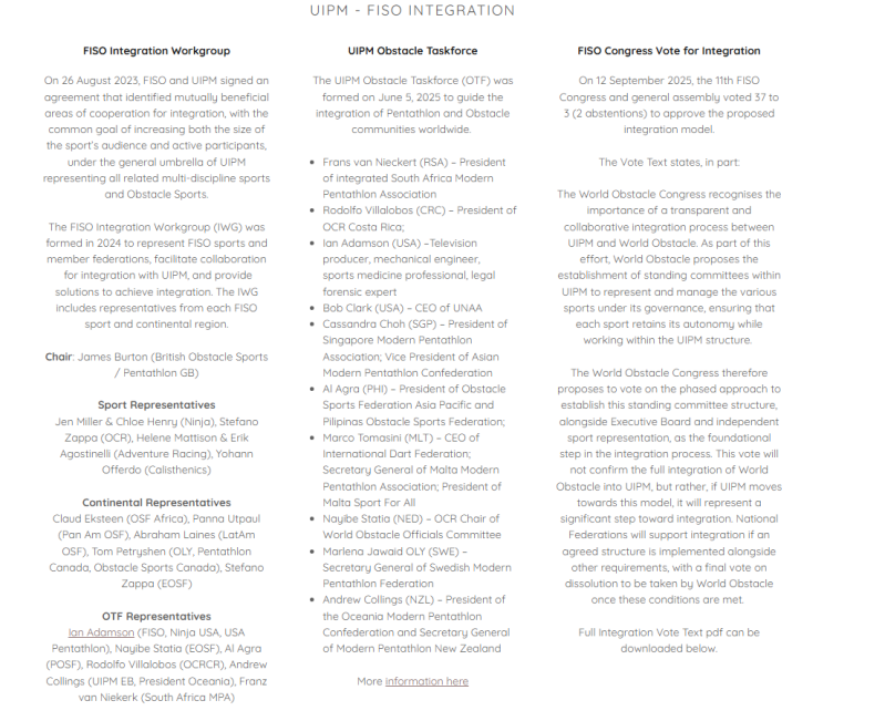 The recent communication from UIPM has been unhelpful to our shared goal of achieving an integration that benefits and is supported by both the obstacle and pentathlon communities. British Obstacle Sports will continue to work constructively with both UIPM and World Obstacle to move forward. A unified sport remains an important goal, but we must ensure that the interests of obstacle sports are fully protected.